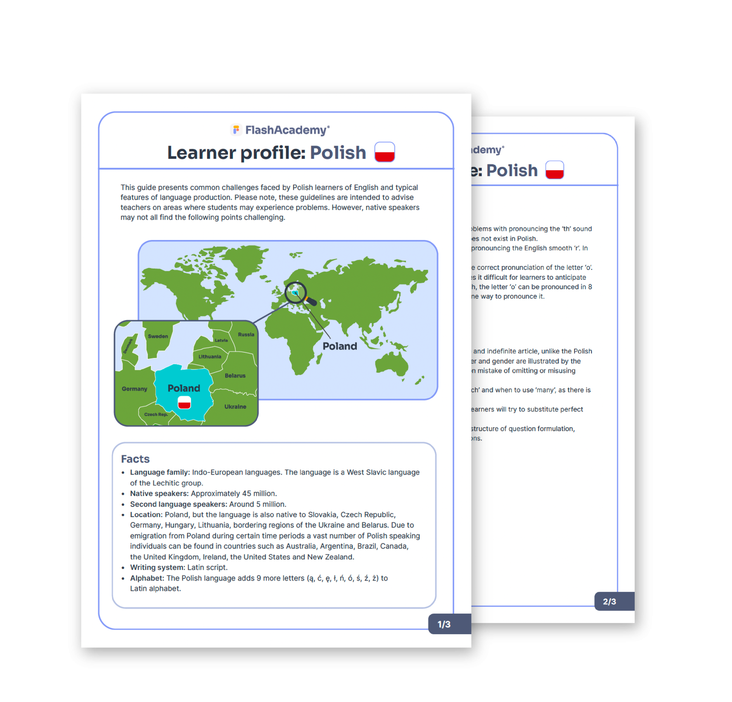 Resource for teachers on common language challenges faced by native Polish speakers.
