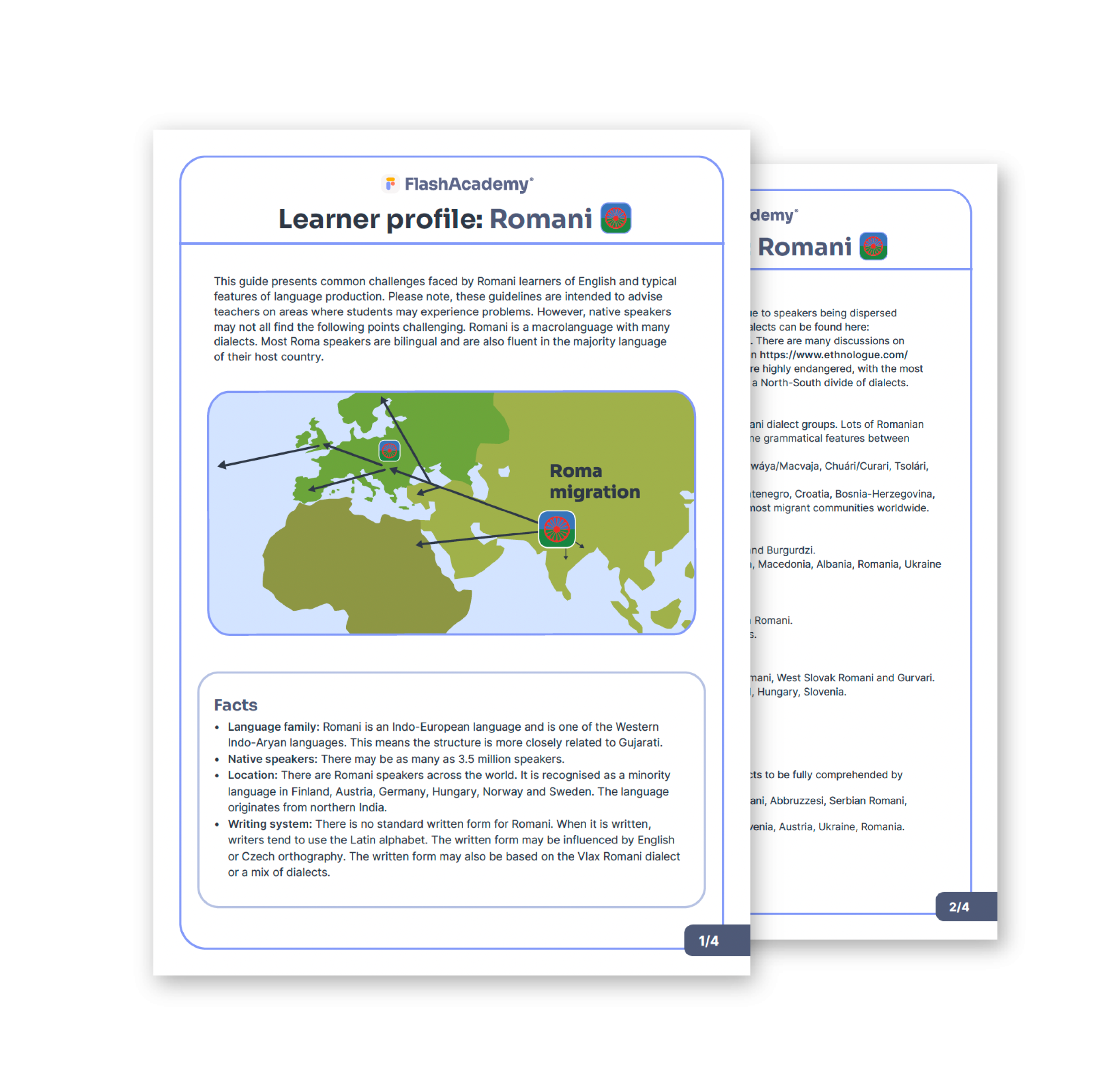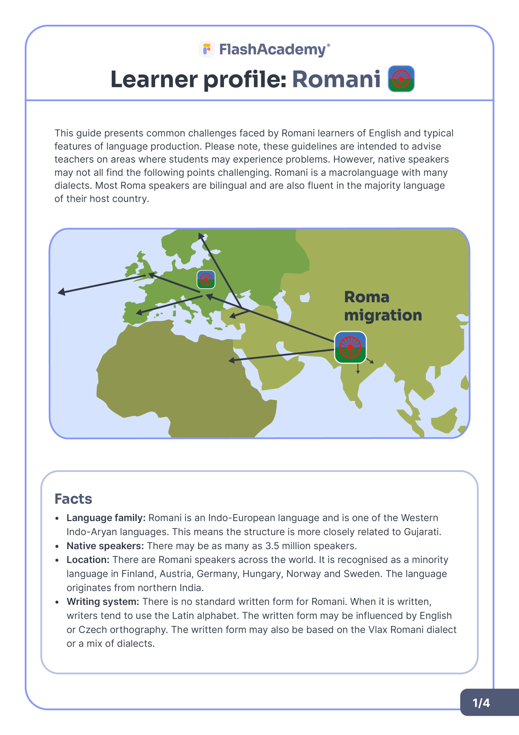 This guide presents common challenges faced by Roma learners of English and typical features of language production.