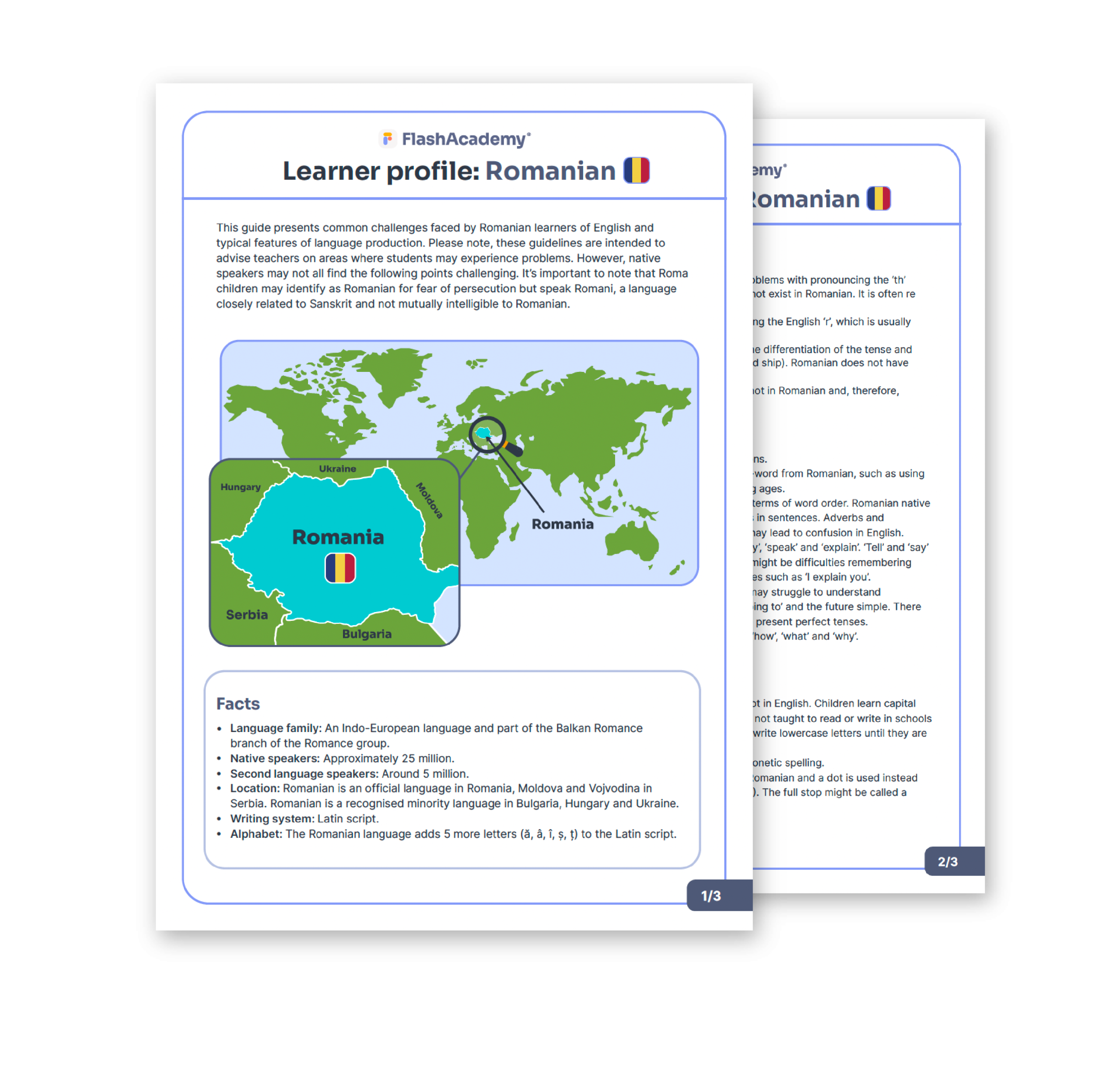 This guide presents common challenges faced by Romanian learners of English and typical features of language production.