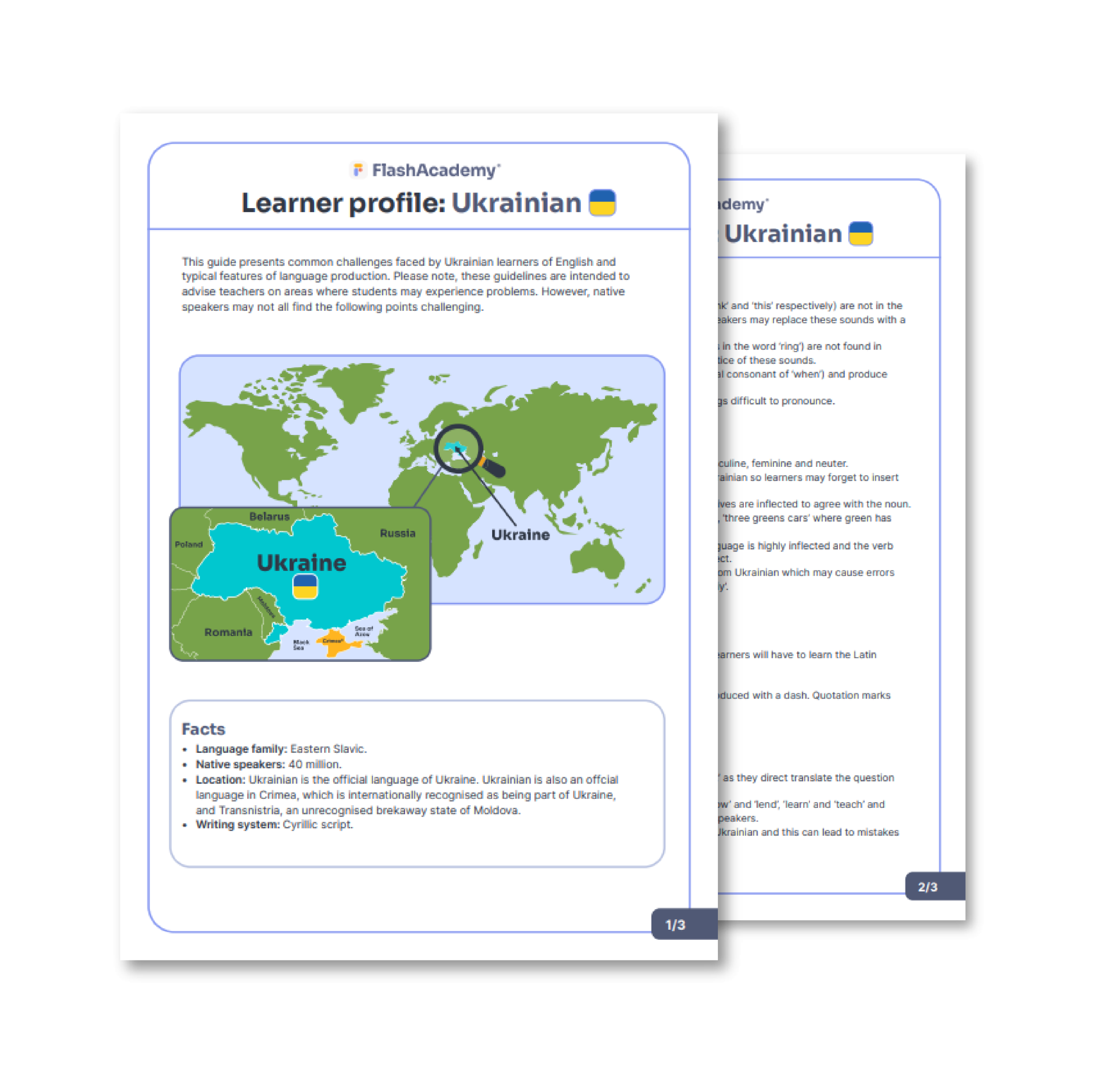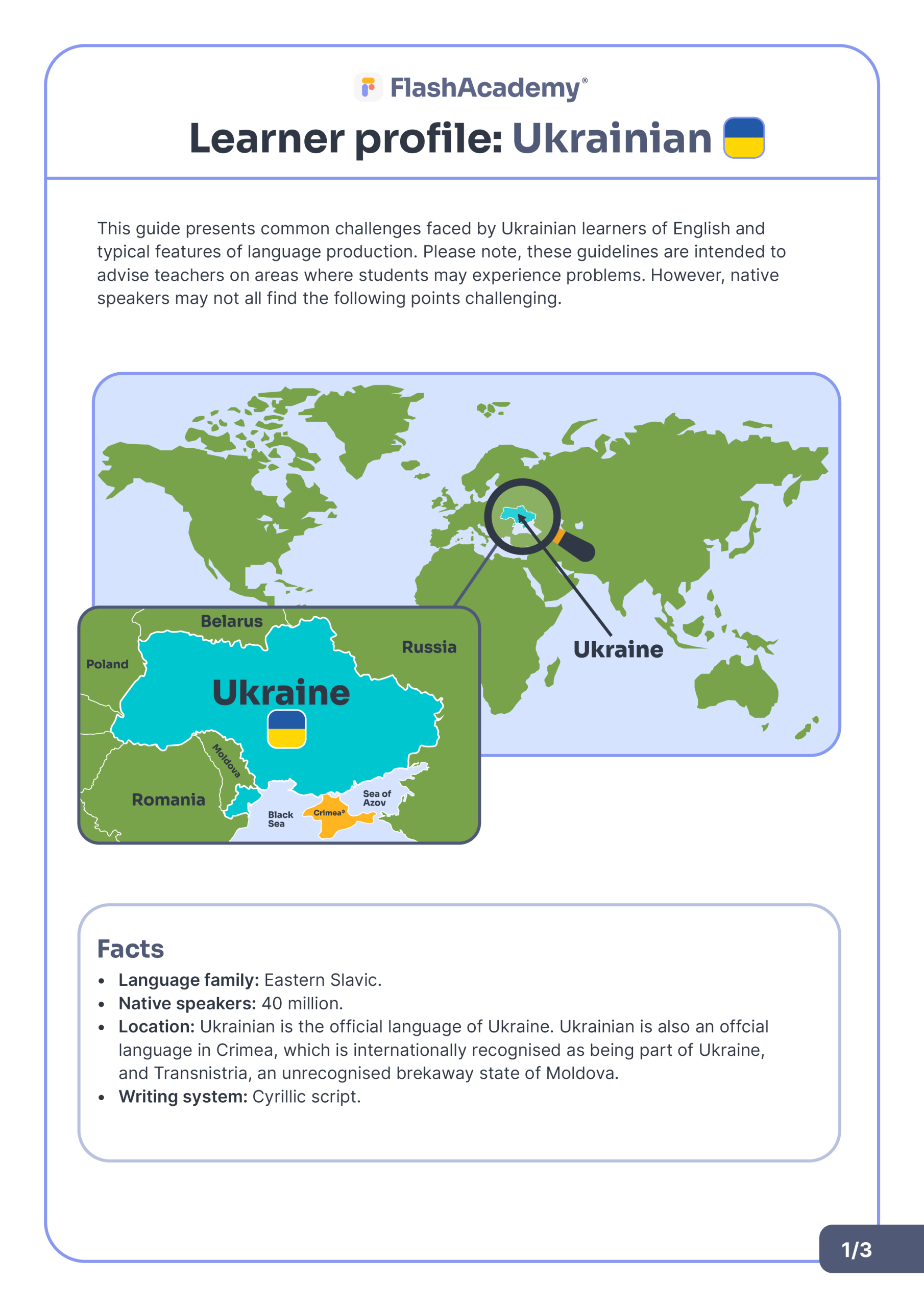 This guide presents common challenges faced by Ukrainian learners of English and typical features of language production.